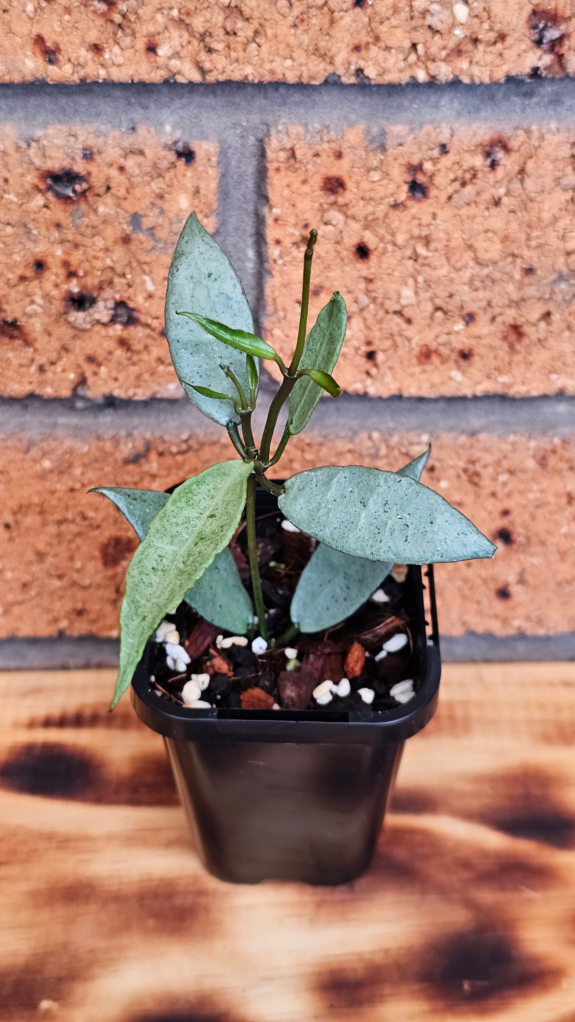 Hoya lacunosa 'Louisa's Silver' with multi growth point, currently growing in 7cm square tube nursery pot.