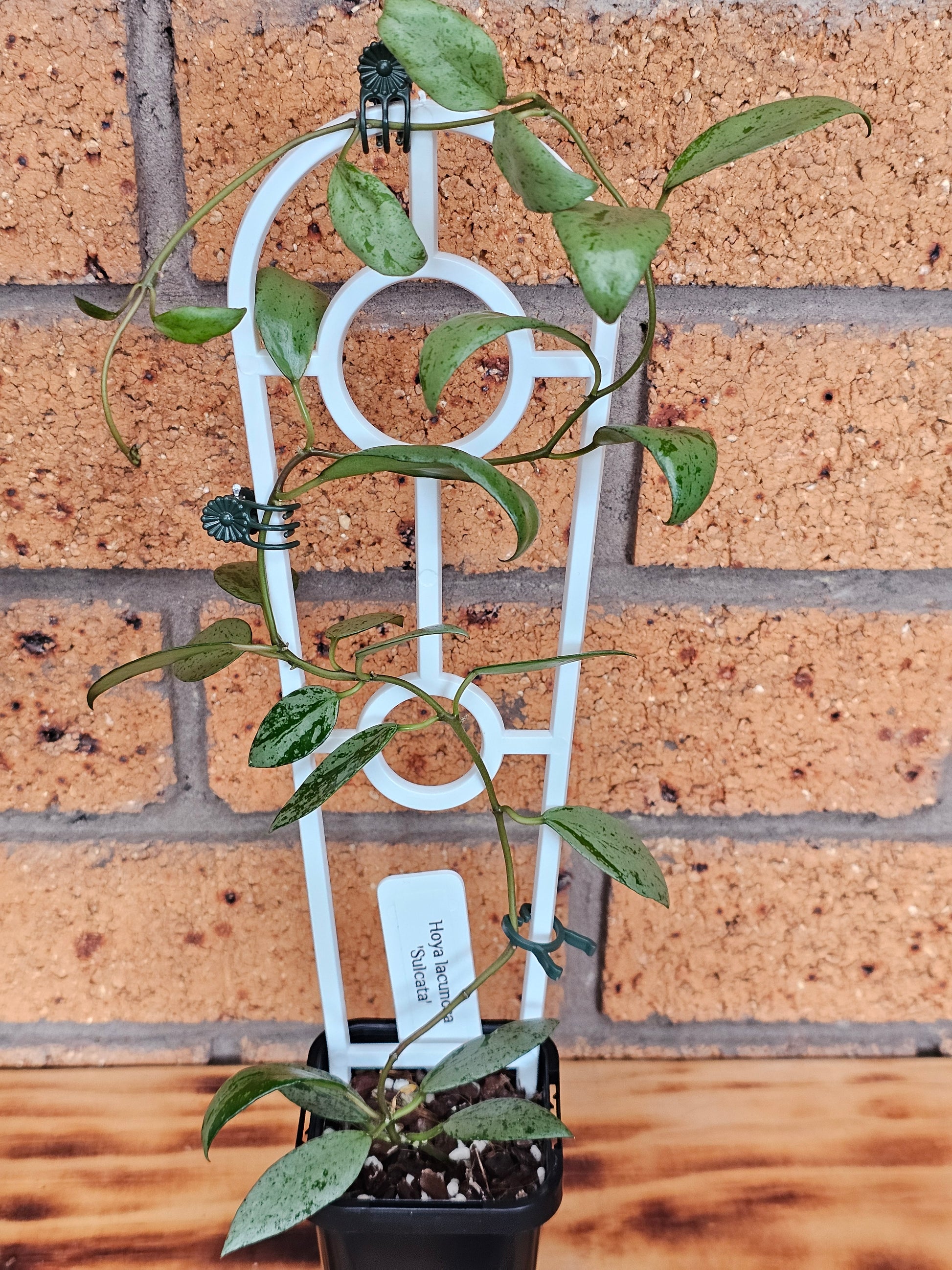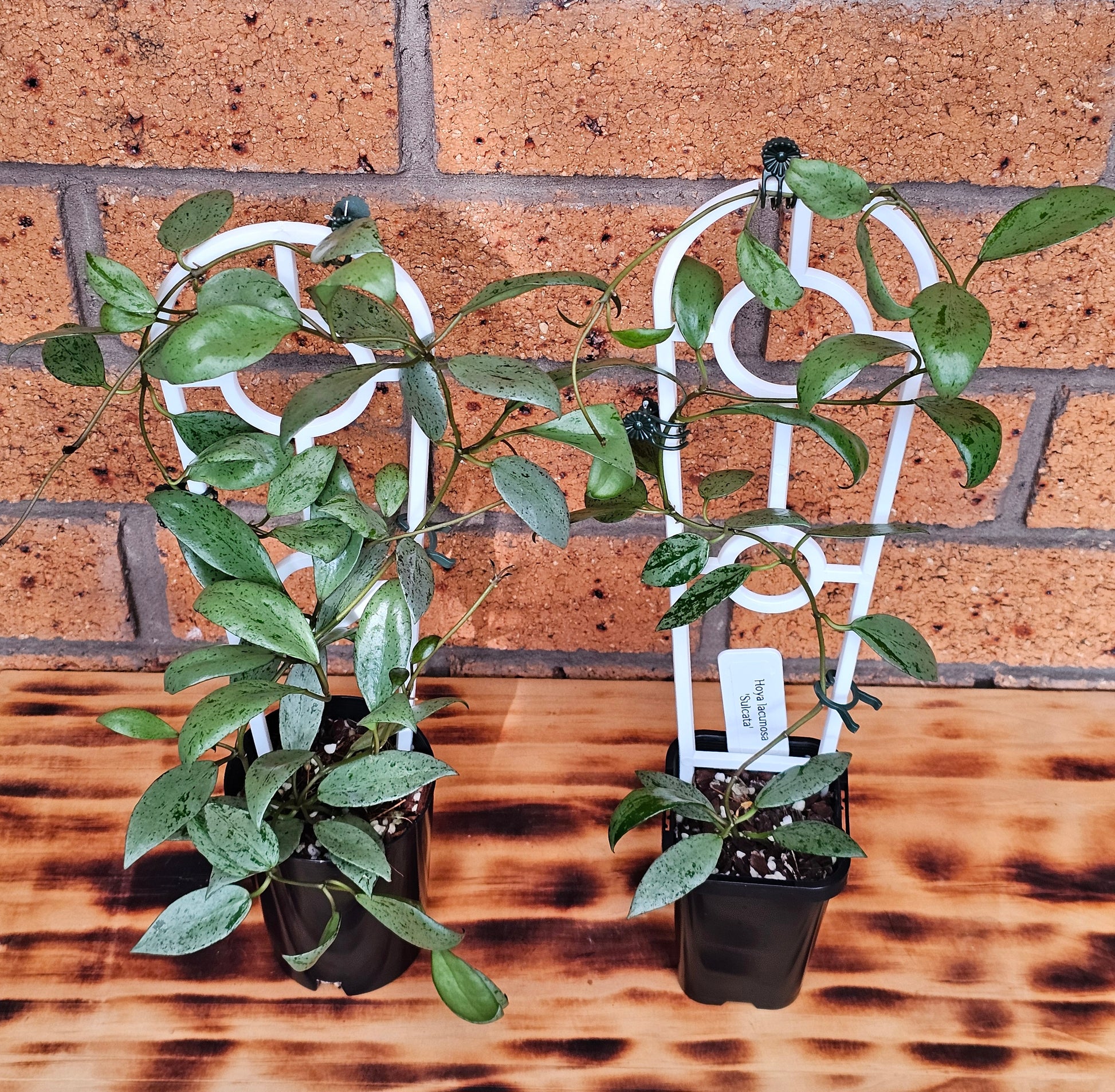 Hoya lacunosa 'Sulcata'Β established plant and currently growing in 7.5cm round (Letter A) and 7cm square(Letter B) black nursery pots.