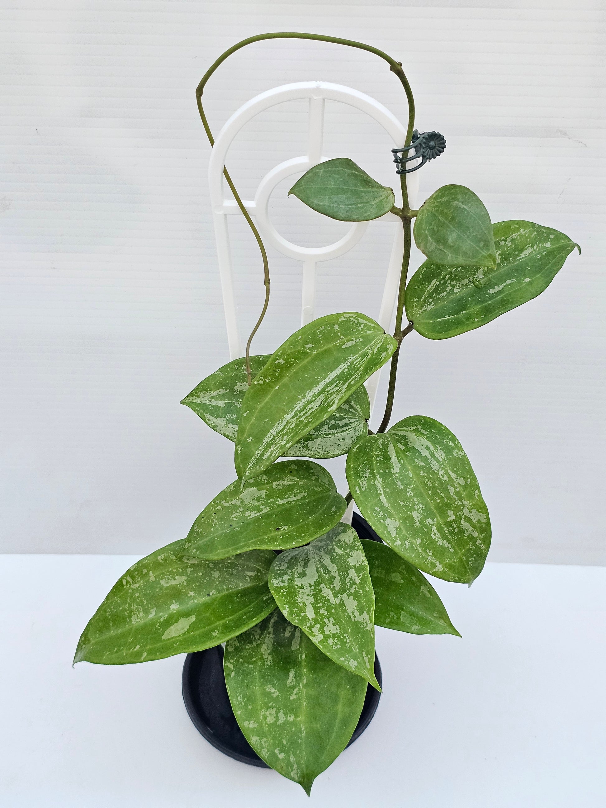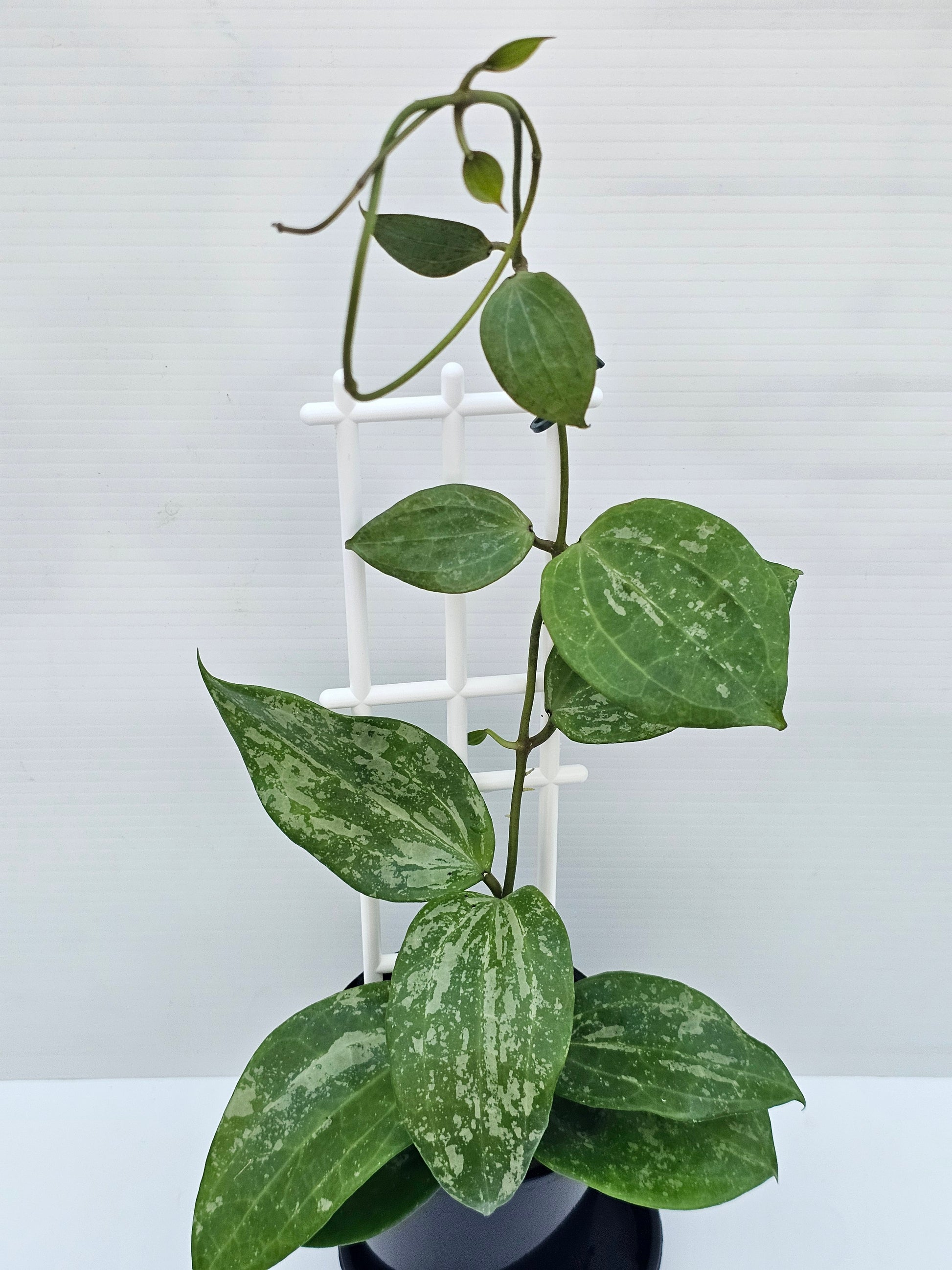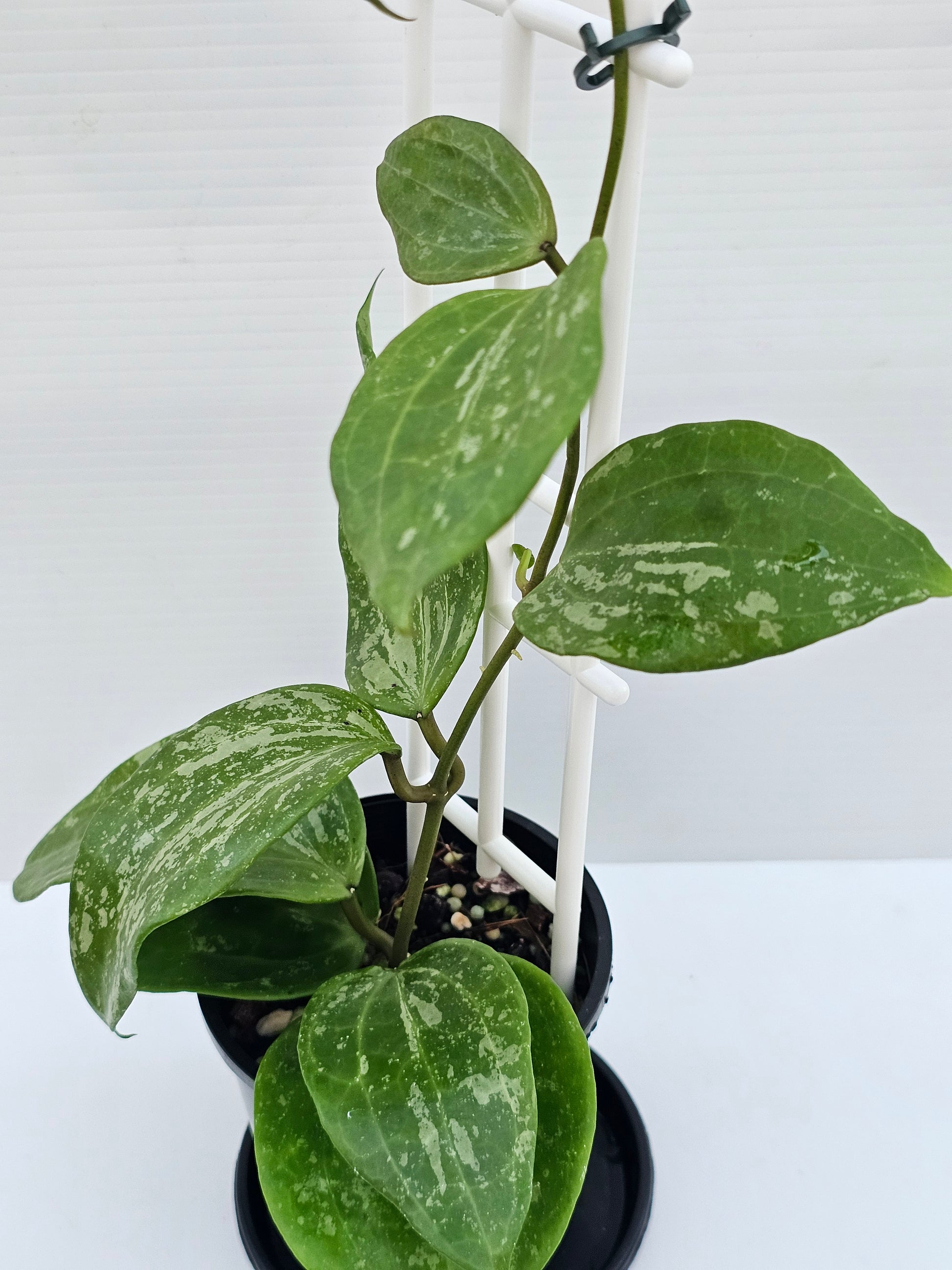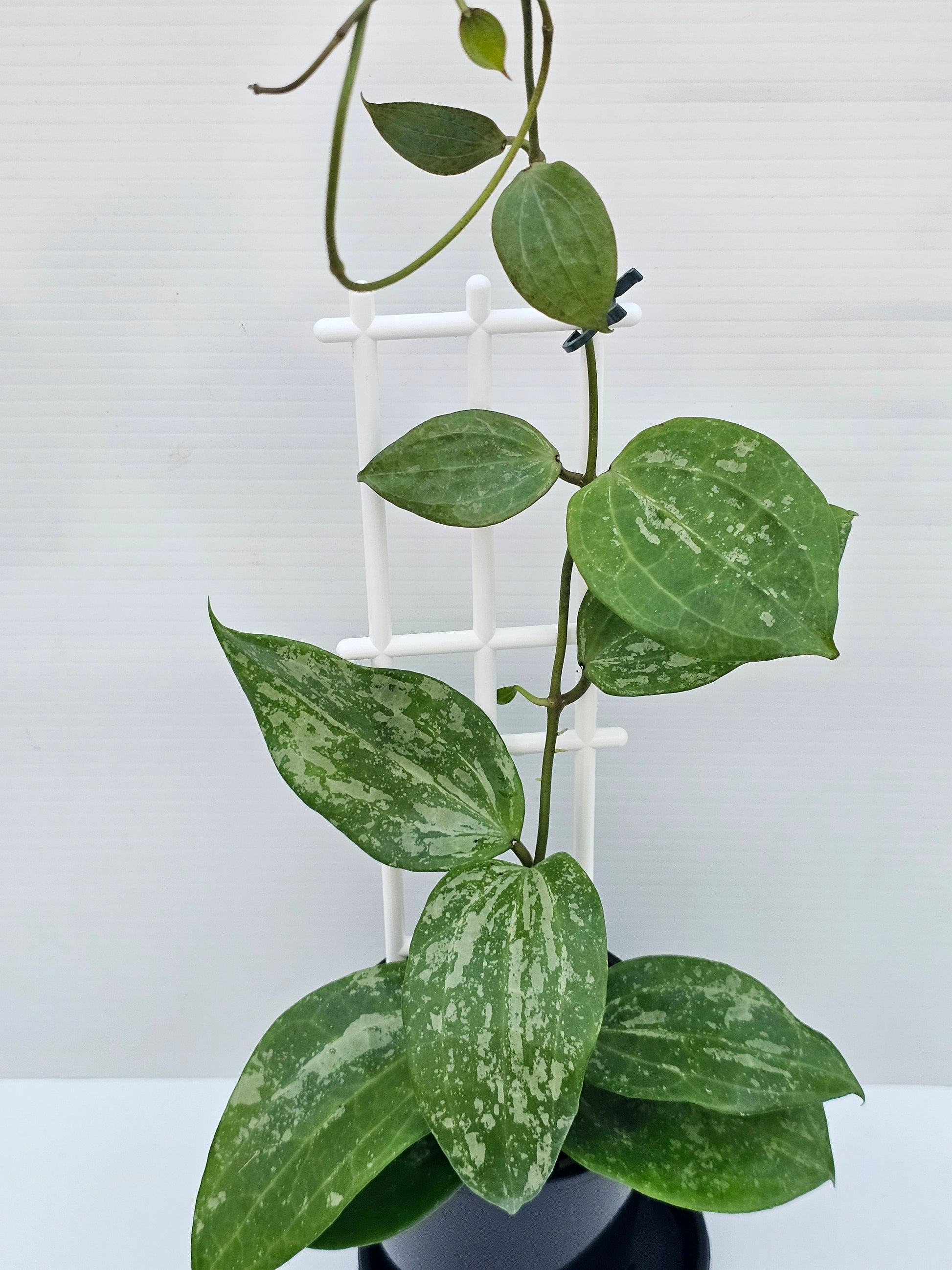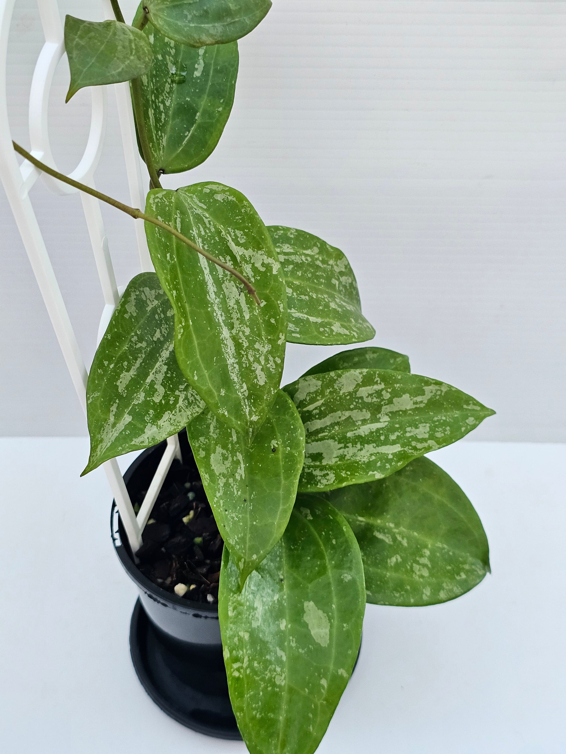 Hoya latifolia 'Snow Queen', established plant and currently growing in 10cm round black nursery pots.