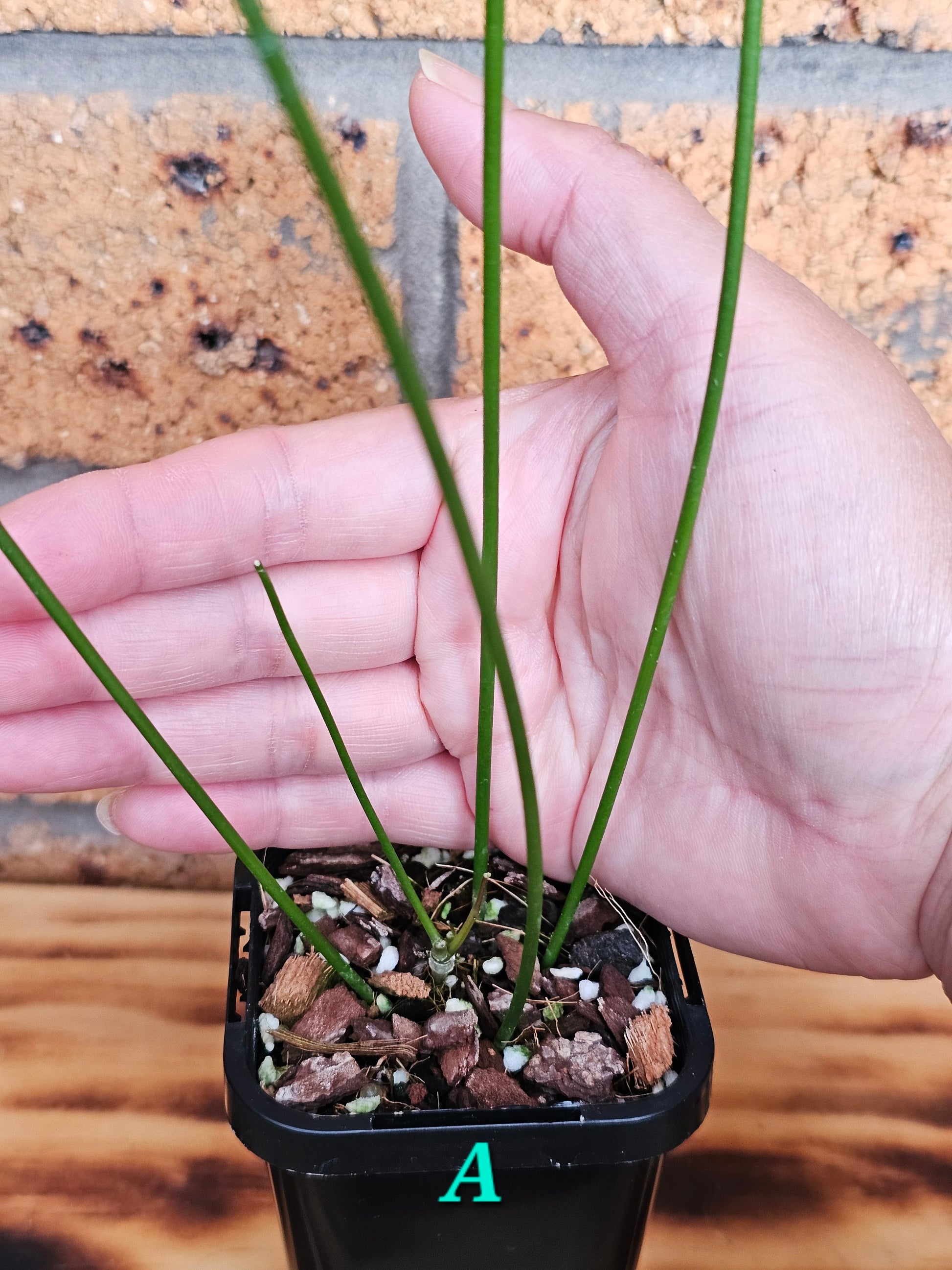 Hoya spartioides (The Leafless Hoya) established plant with 3 new growth point currently growing in 7cm square tube black nursery pots.