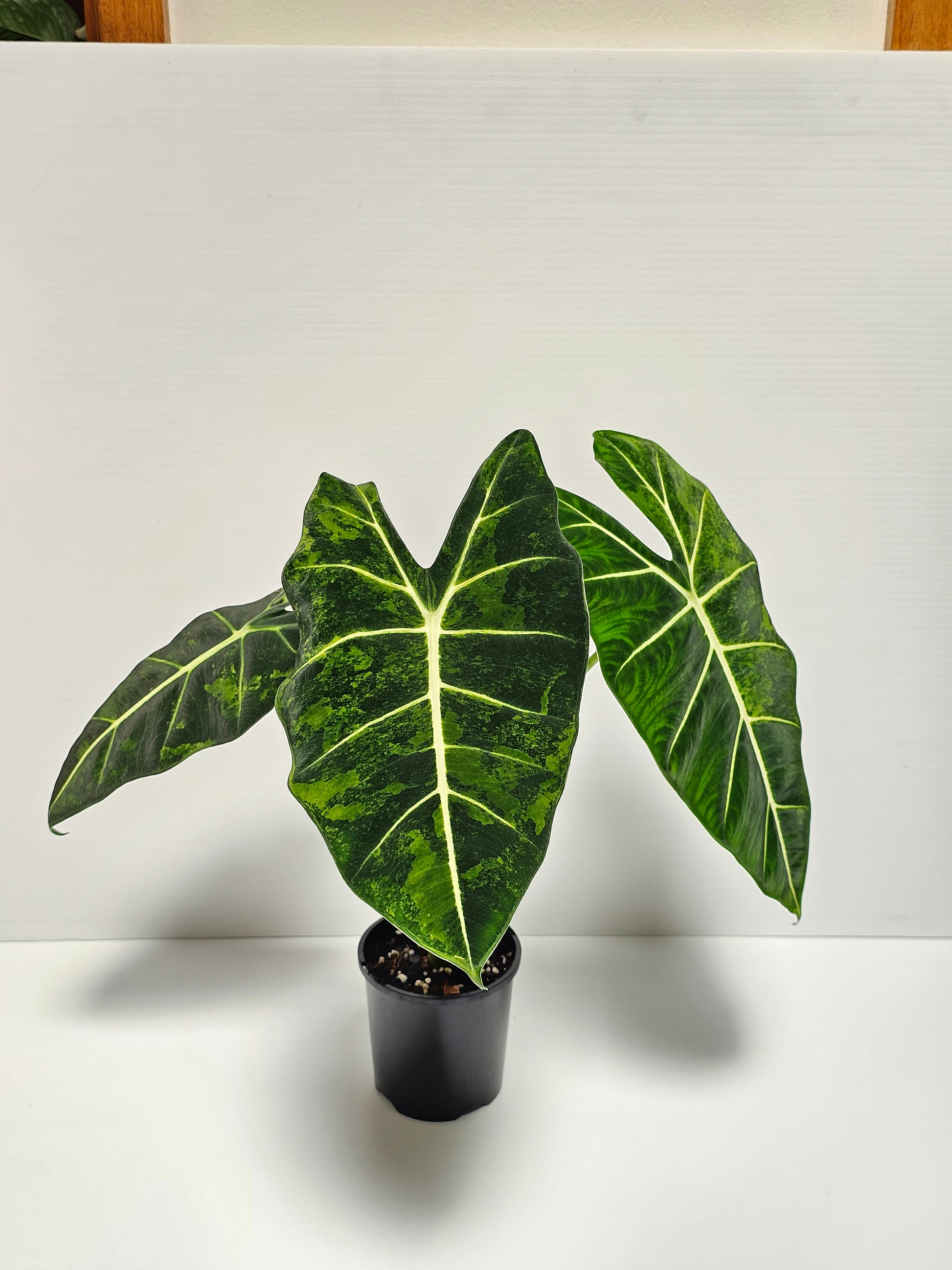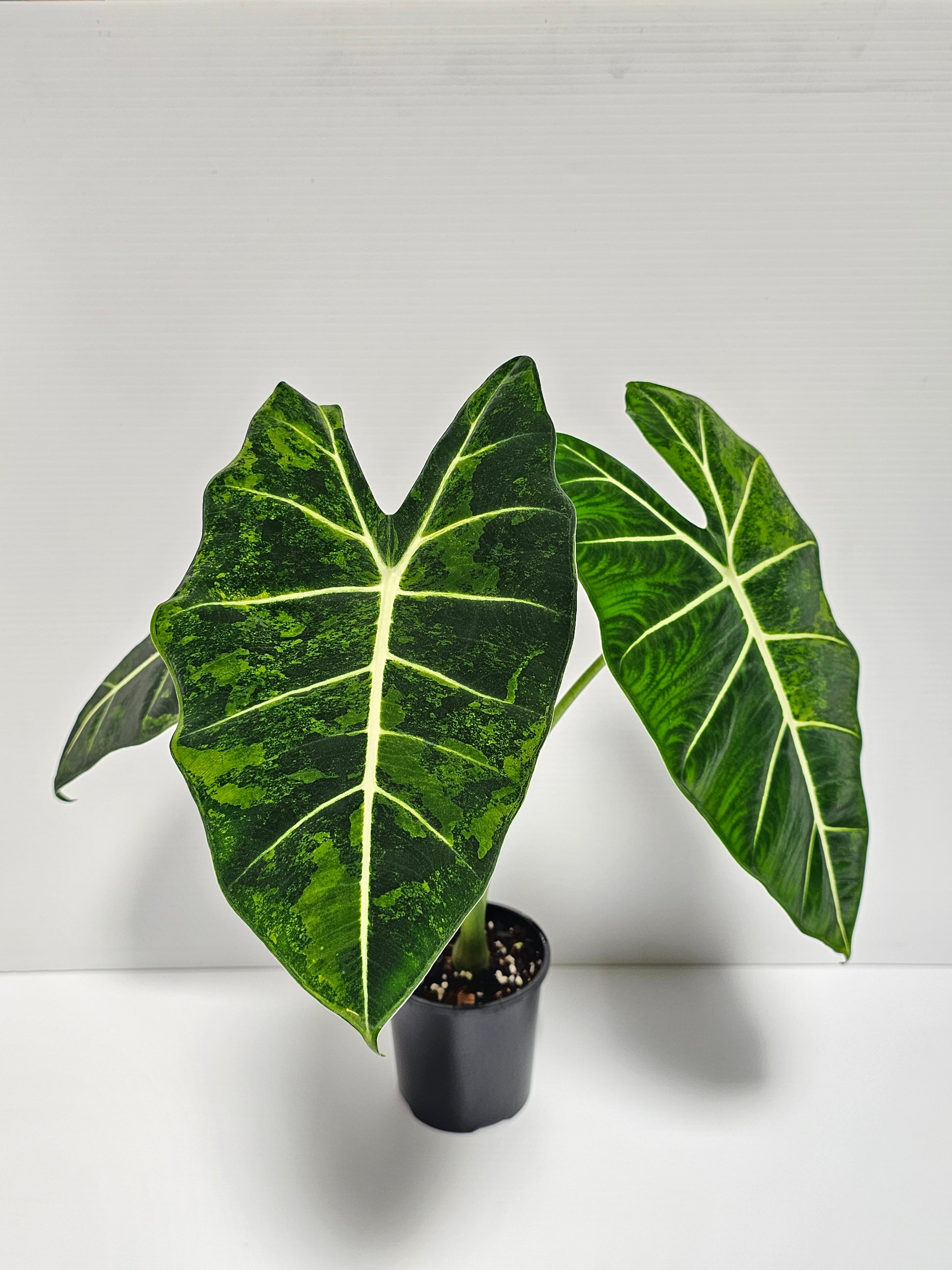 Alocasia frydek 'Aurea' or Green On Green and currently growing in 10cm round black nursery pot.