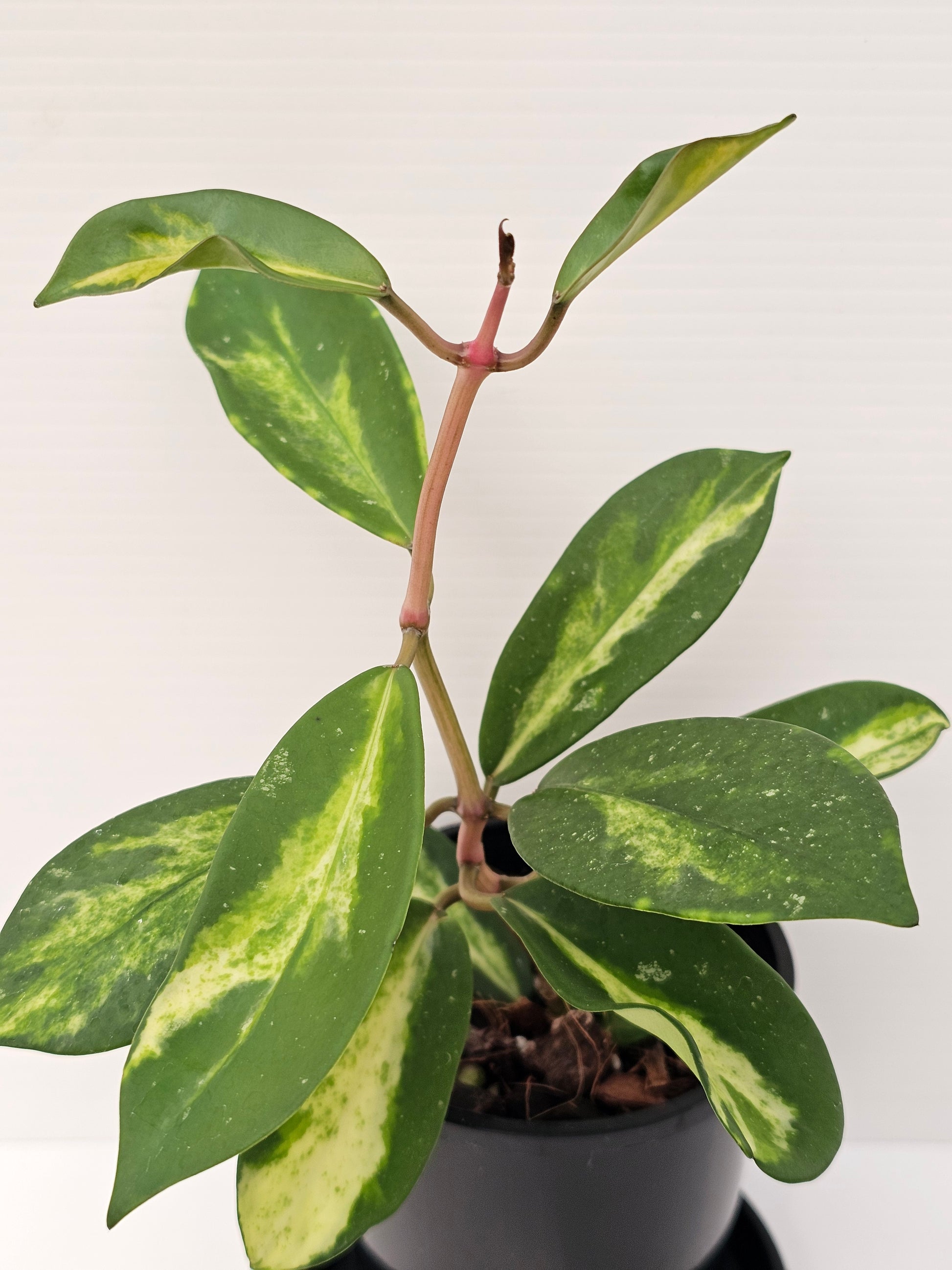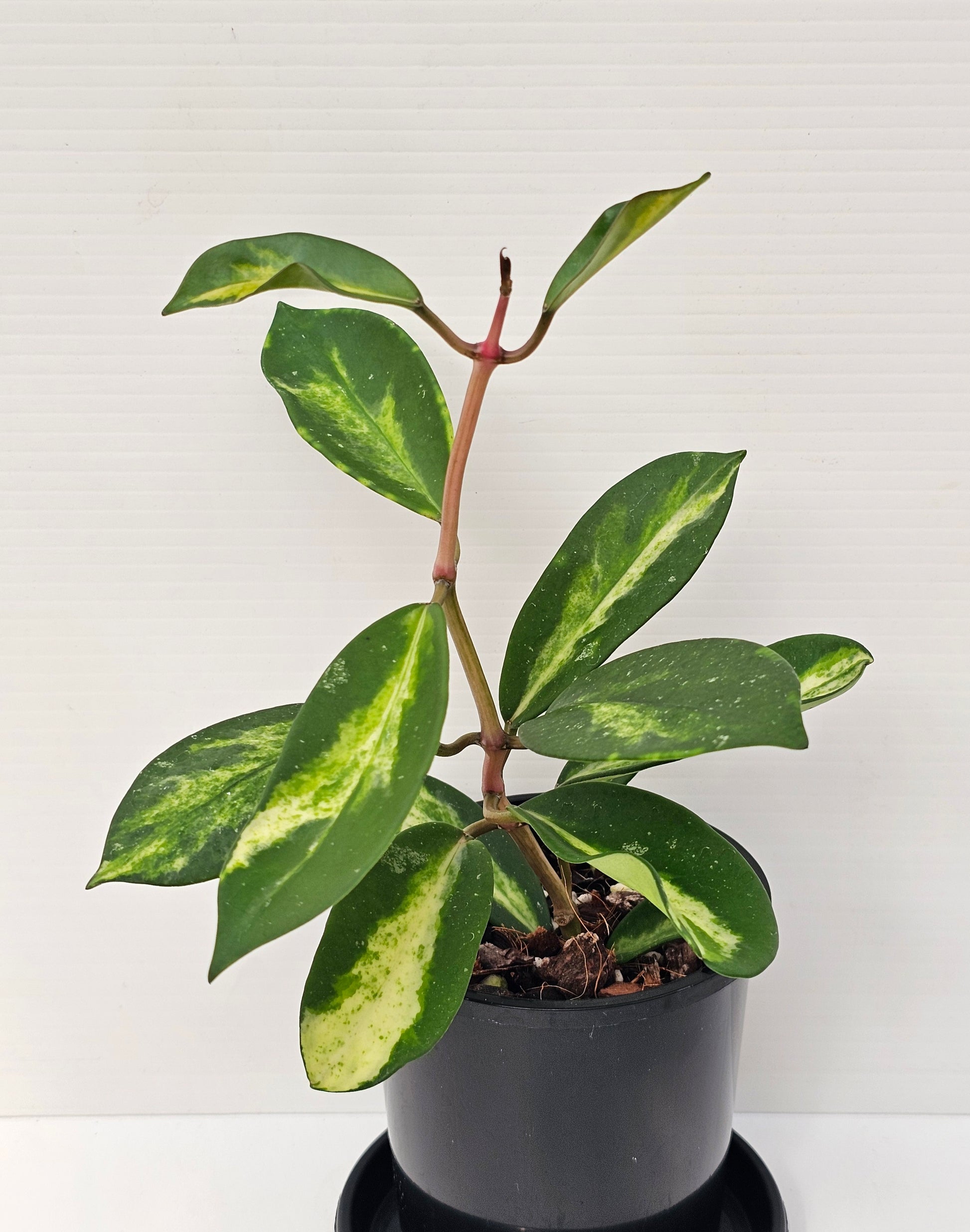 Hoya diversifolia 'Variegated' currently growing in 10cm round black tube nursery pot.