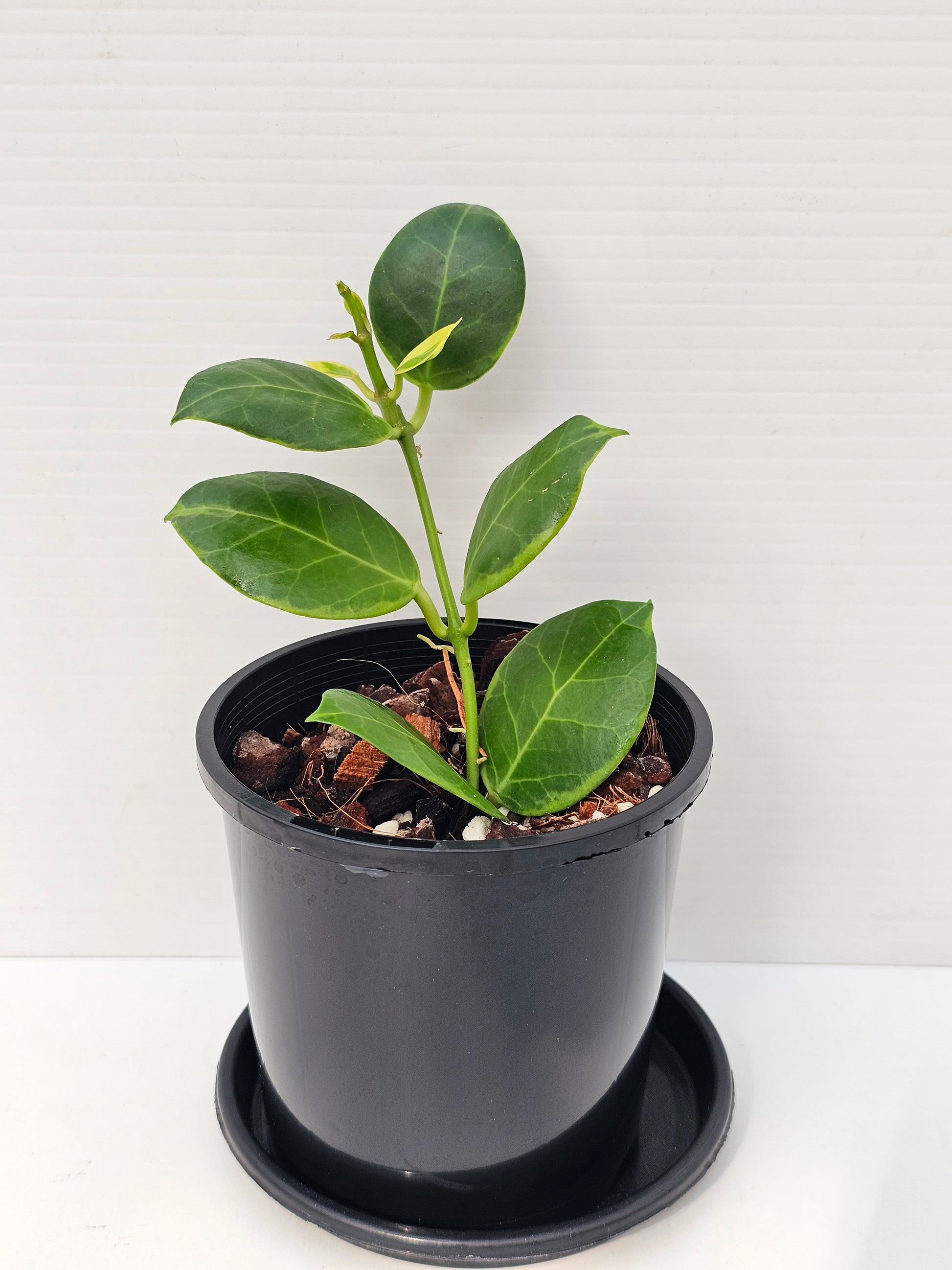 Hoya obscura 'Albomarginata' currently growing in 10cm round black tube nursery pot.