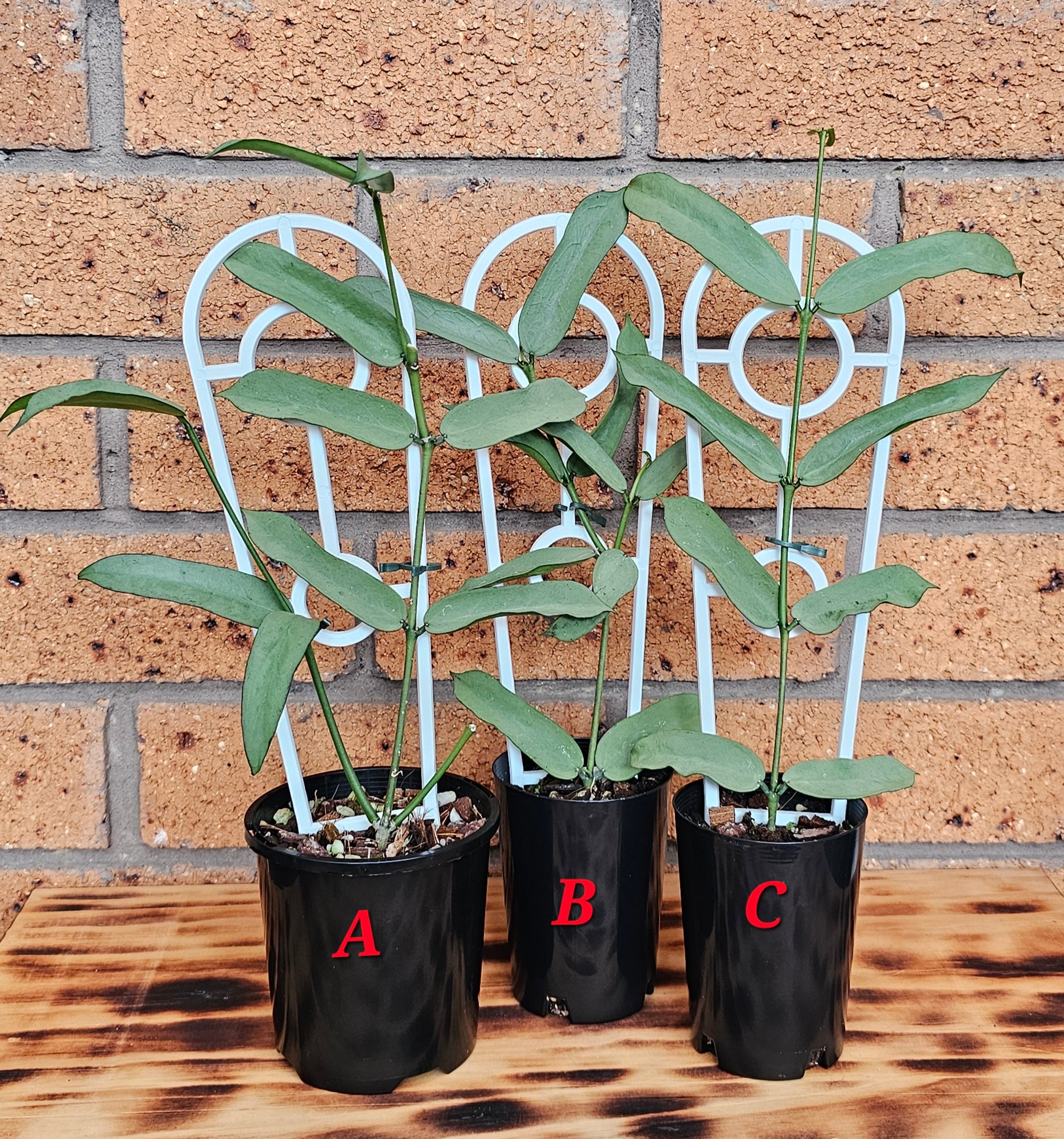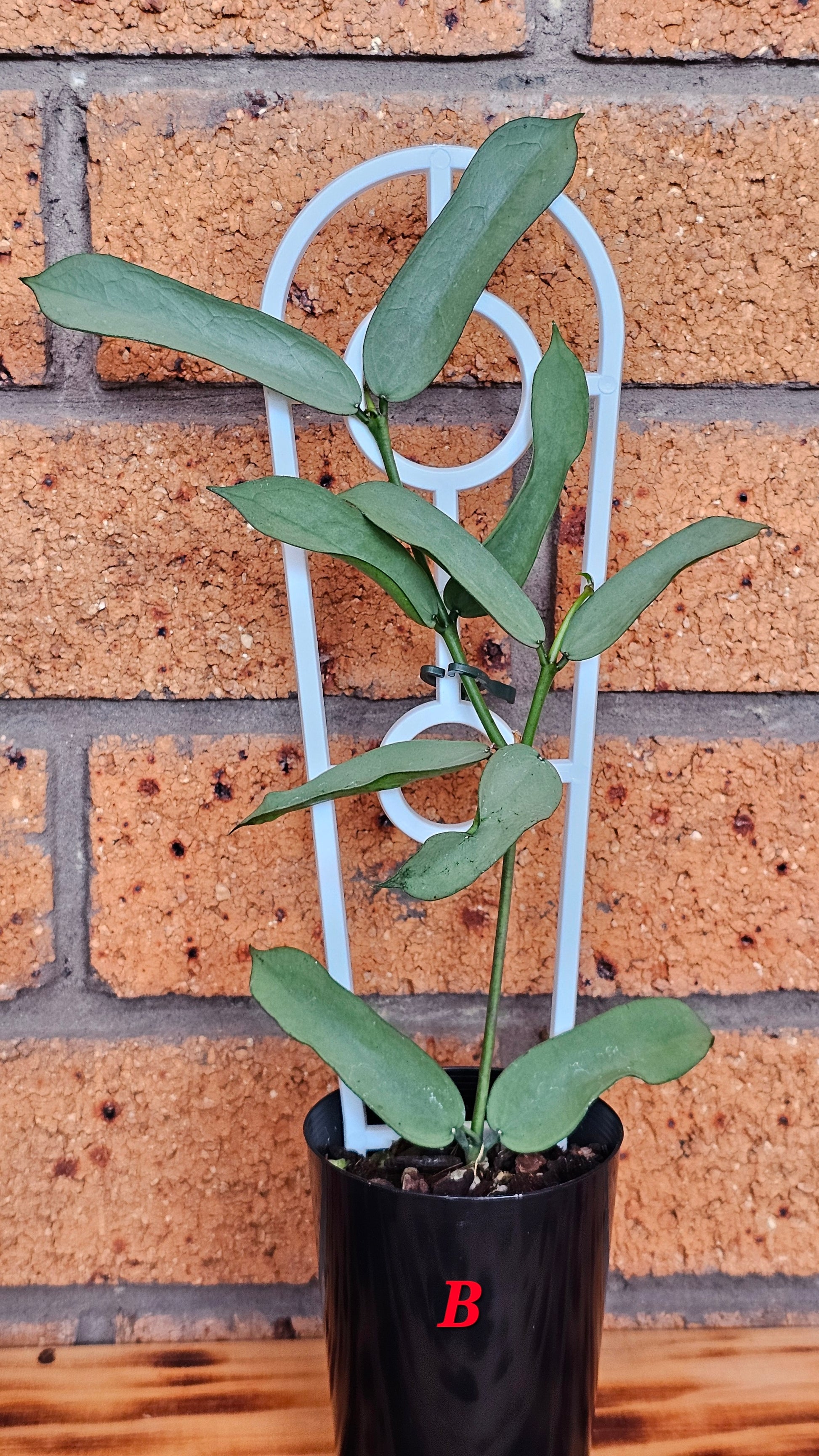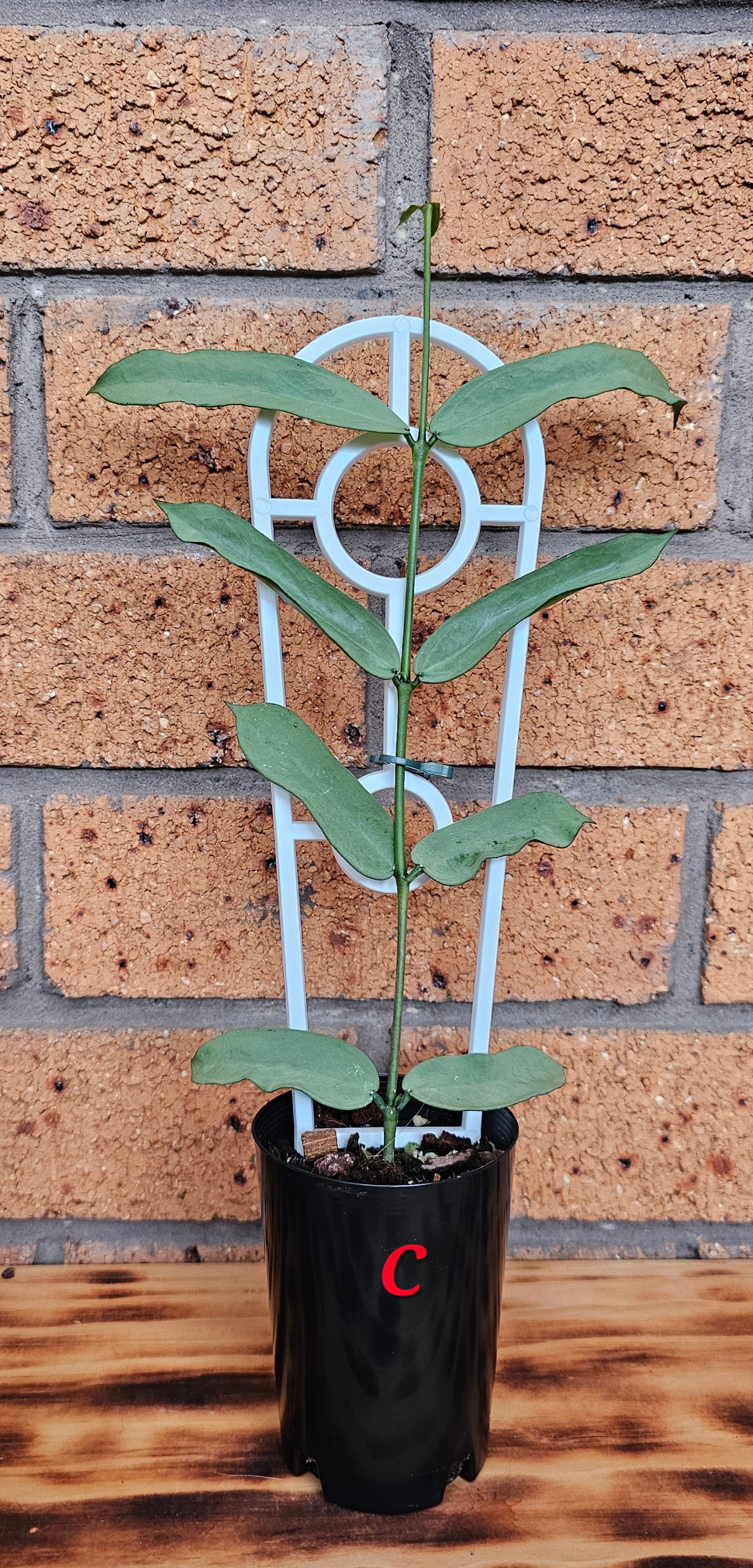 Hoya Pandurata Tsiang Silver, established plant and currently growing in 7.5cm round black nursery pots.