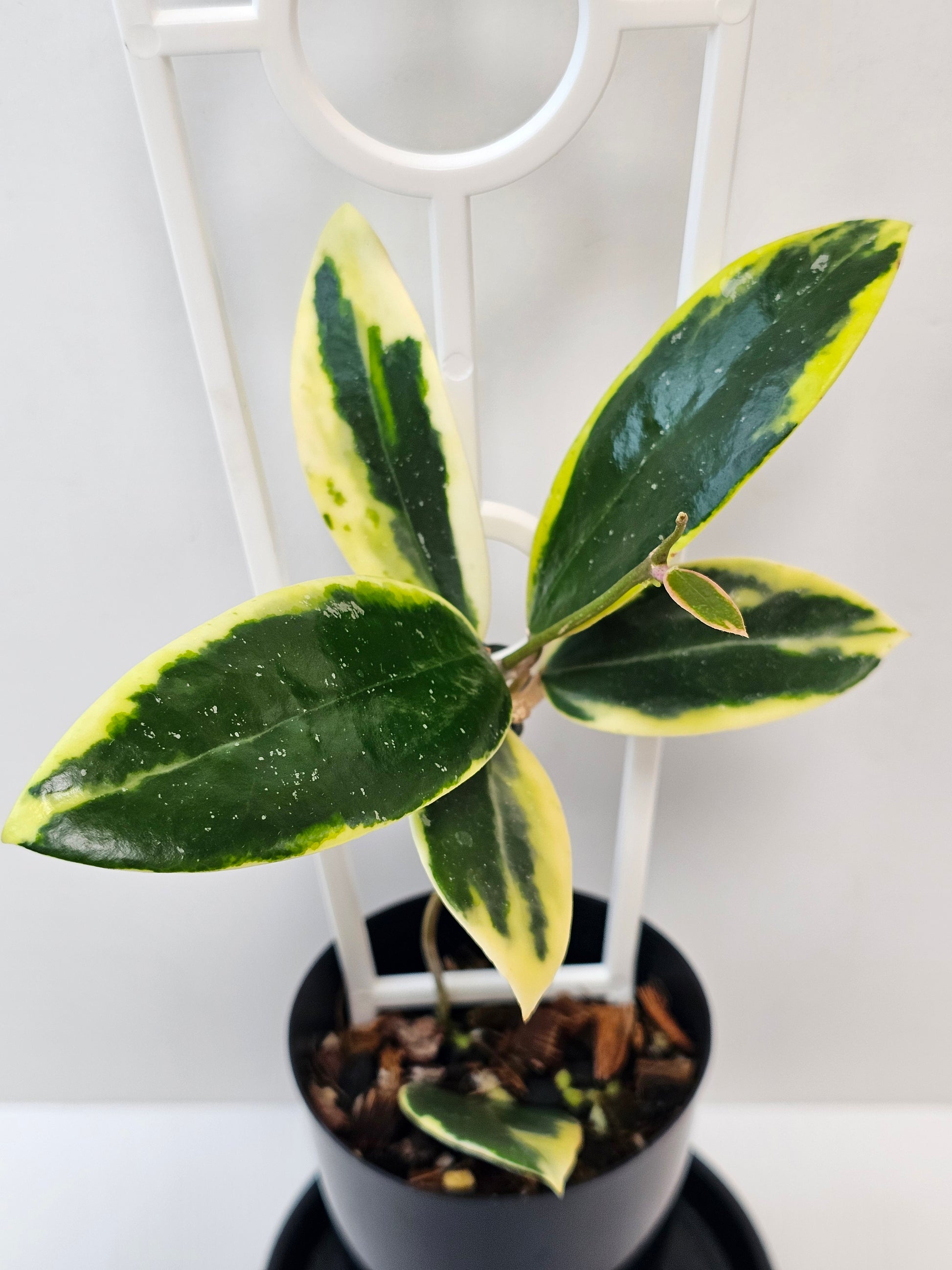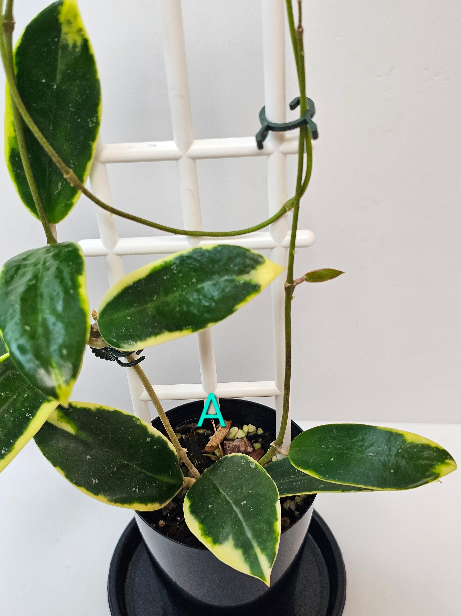 Hoya verticillata Albomarginata, currently growing in 7.5cm round black nursery pots.